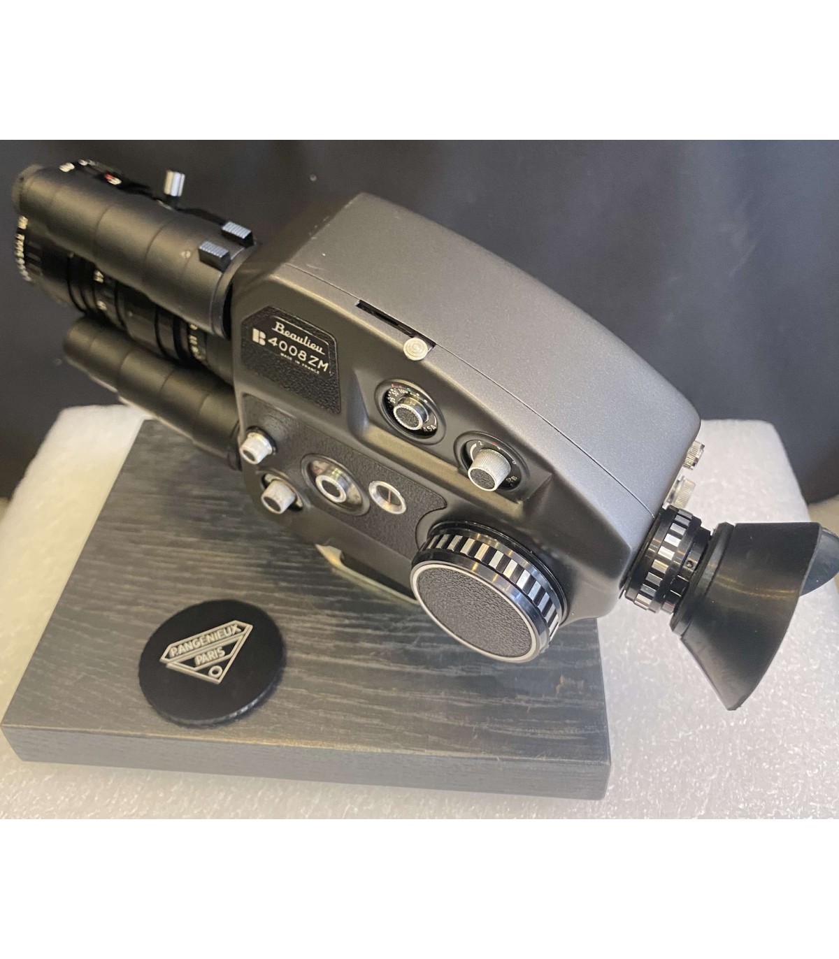 If you're looking for a solid camera with a sharp lens for you next project, then this 4008ZM Super 8 camera will suit your needs. In 1969, with its 4008 ZM model, BEAULIEU established itself as the world leader in Super 8 cameras. In 1965, the BEAULIEU 2008 S introduced the “Reglomatic” system to assist the diaphragm of Schneider and Angenieux lenses designed for this purpose. In 1969, the BEAULIEU 4008 ZM extended this technology to variable speed zooming (2 to 12 seconds) for the Angénieux 8 to 64mm lens. This lens has a “macro” setting that allows filming at 1 millimeter from the subject. The viewfinder was improved (X27) and the maximum speed increased to 70 frames per second.